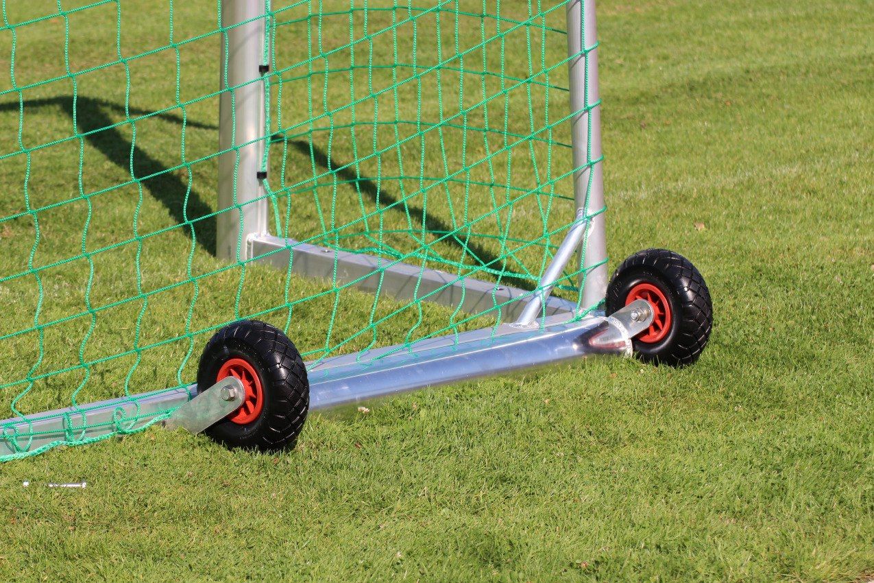 Onze kantelbeveiliging met wielen en gewichten kan achteraf worden gemonteerd en beschermt de deur betrouwbaar tegen kantelen. Tegelijkertijd biedt het antikantelsysteem de mogelijkheid om mobiele doelen flexibel over het veld te verplaatsen. Het antikantelmechanisme voor voetbaldoelen wordt met interne contragewichten direct en stevig op het doel geschroefd. Het achteraf vullen met zand of ander gewicht ter plaatse is daarom niet nodig. Ons antikantelmechanisme wordt geleverd met ingeschuimde luchtwielen , die geschikt zijn voor alle sportondergronden en optimale loopeigenschappen hebben. Zelfs jonge mensen kunnen de anti-tip voetbaldoelen gemakkelijk verplaatsen.