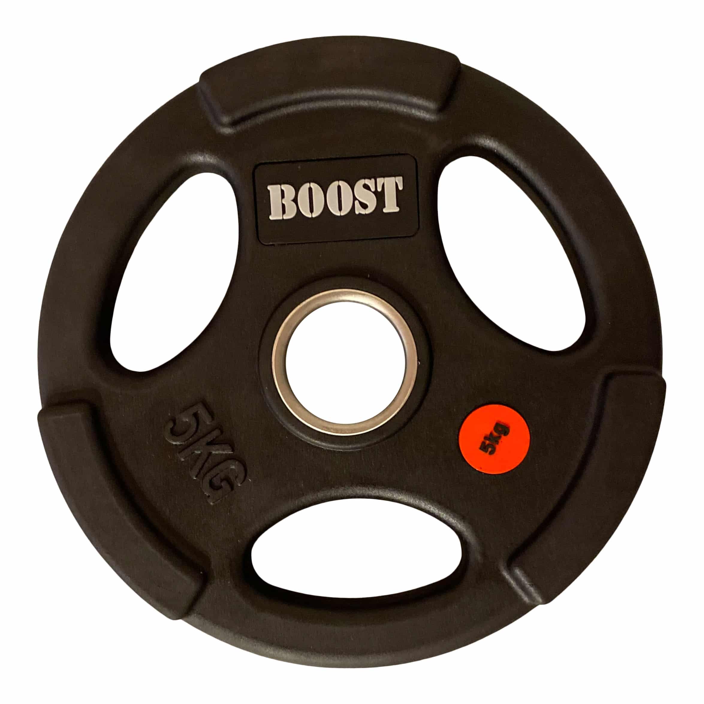 De BOOST Rubberen Halterschijven zijn sterk rubber gecoate schijven met een diameter van 50mm. Door de tri-grip zijn ze multifunctioneel te gebruiken. De schijf heeft een RVS afgewerkte ring.