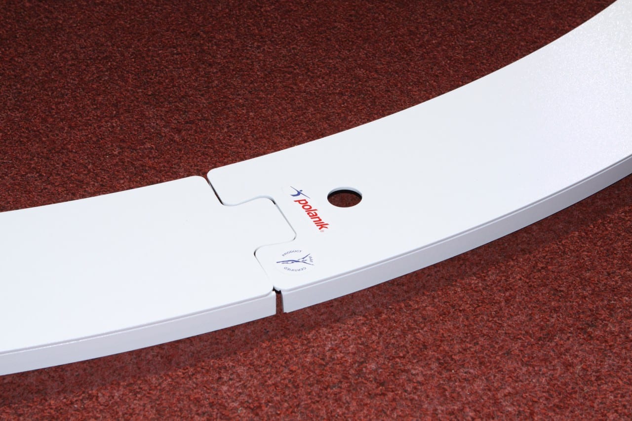 De conversie cirkel voor kogelslingeren is van gegalvaniseerd staal met witte poedercoating of glasfiber. Buiten diameter is 2500 mm, inwendige diameter 2135 mm, staal verzinkt en gepoedercoat of wit glasvezel, World Athletics gecertifieerd E-05-0417. Bestaat uit 4 elementen die makkelijk in de bestaande betonnen ringen gelegd kan worden.