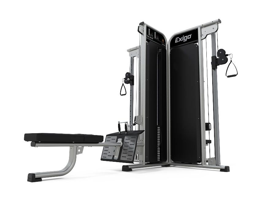 De Exigo 4 Station Jungle Gym is een multifunctionele krachttraining machine, ideaal voor een hoeveelheid van veilige en effectieve oefeningen voor het boven- en onderlichaam. De Exigo 4 Station Jungle Gym is opgebouwd uit twee verstelbare kabel kolommen.