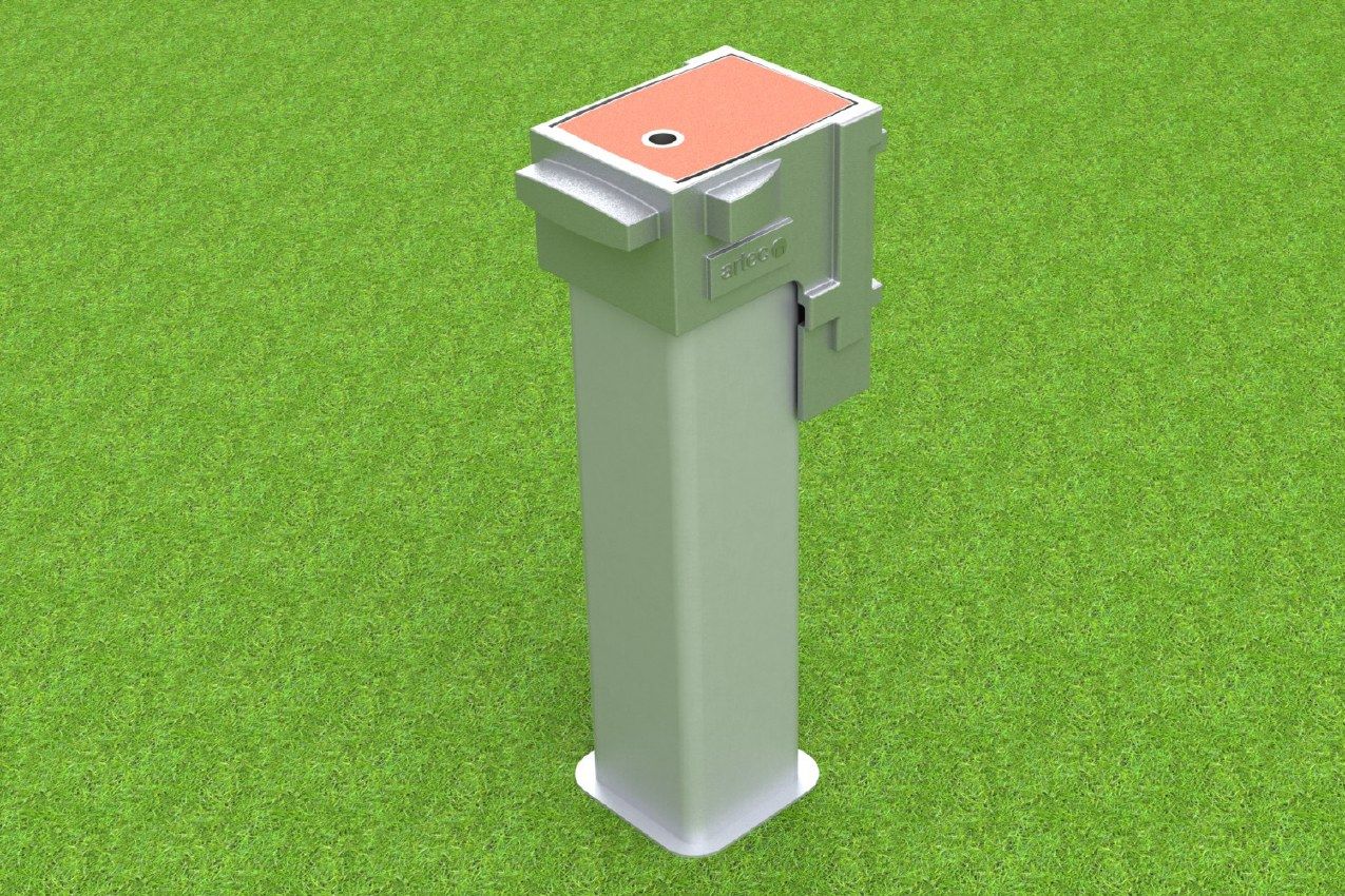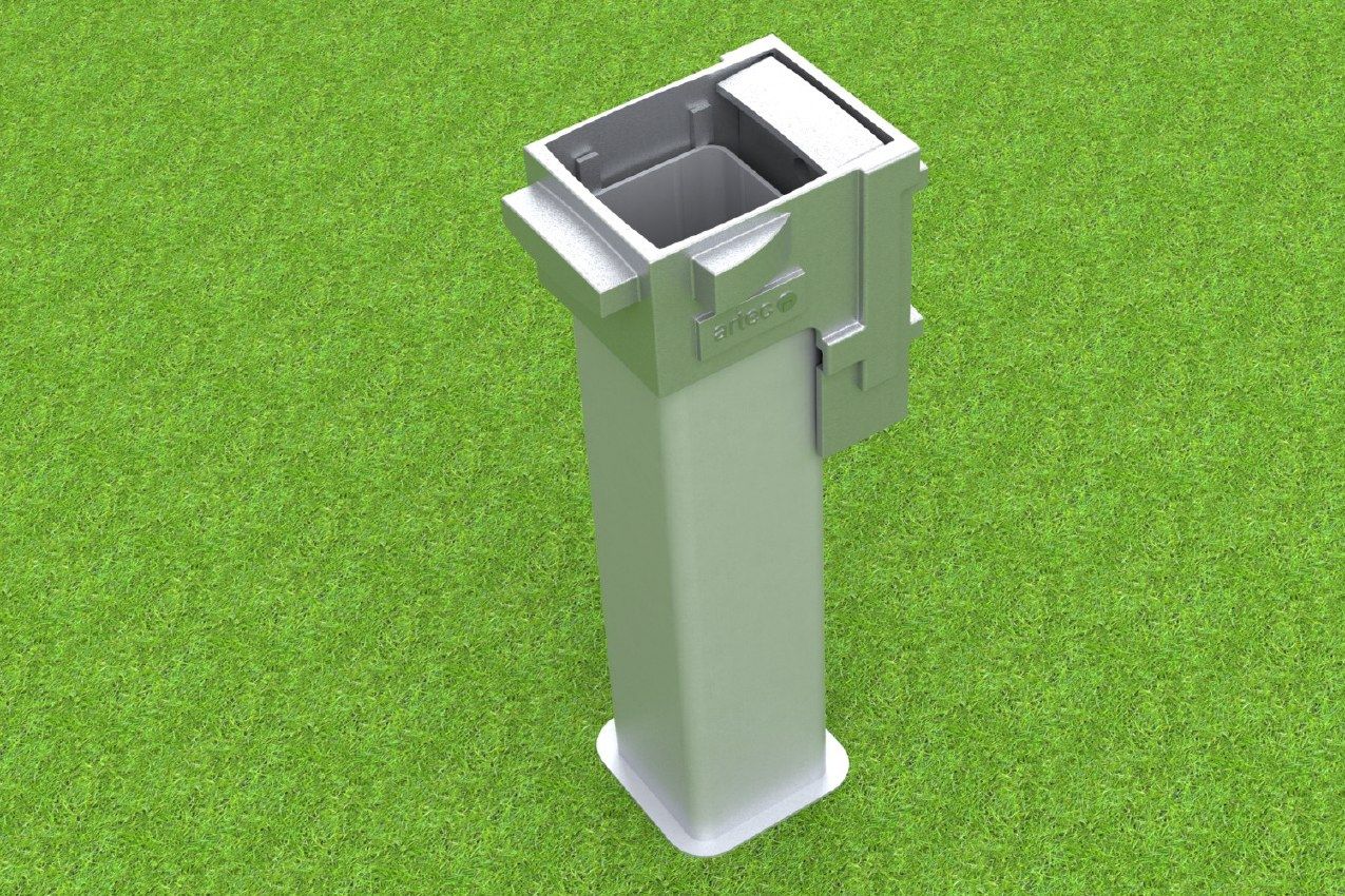 De speciale grondpot heeft een vierkant profiel van 80 x 80 mm. De grondpot is gemaakt van aluminium en is van hoge kwaliteit. De deksel kan ook worden gecoat. Dit betekent dat het zich perfect aanpast aan het bestaande uiterlijk. Daarnaast heeft het een stevig bevestigde kantelbare hoes die via een interne rail in de hoeszak kan worden gekanteld.
