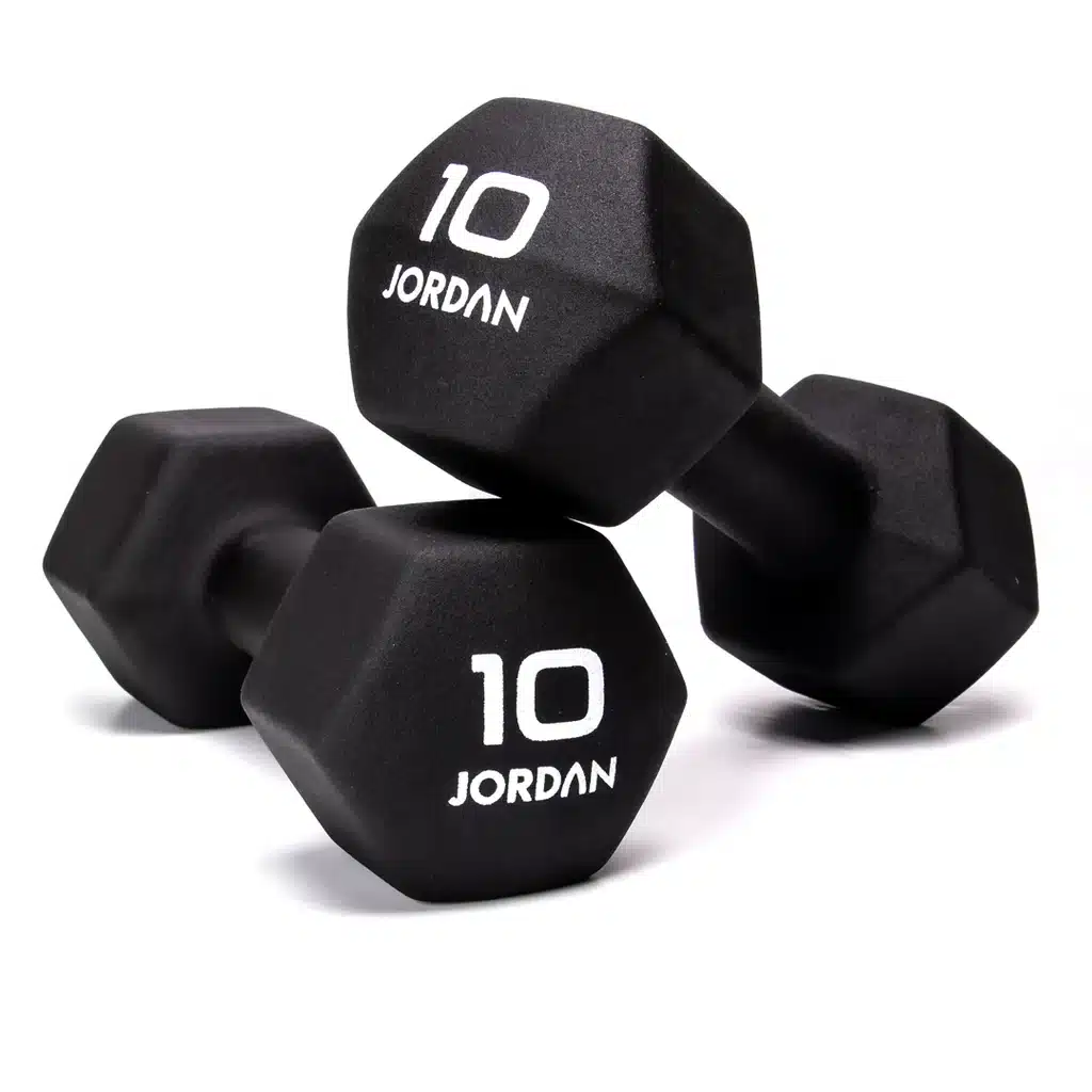 De Jordan studio neopreen dumbells zijn zeer stijlvol en met de neopreen buitenkant ook voor buiten te gebruiken. Ieder gewicht heeft zijn specifieke kleur. De dumbell zijn hoekig qua vorm en daardoor zo ontwerpen dat ze niet makkelijk kunnen rollen. Dit is prettig bij bv. grondoefeningen. Door de neopreen buitenlaag hebben de dumbells een perfecte grip. de dumbells zijn te bestellen vanaf 0.5kg t/m 10kg