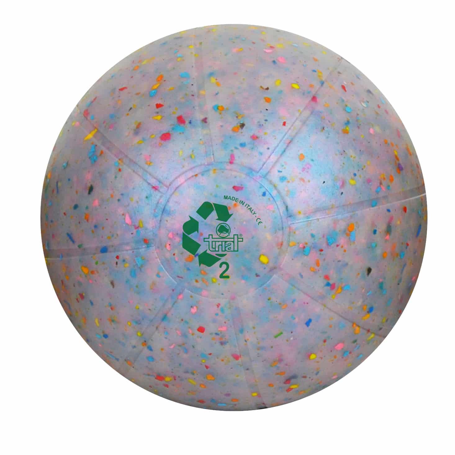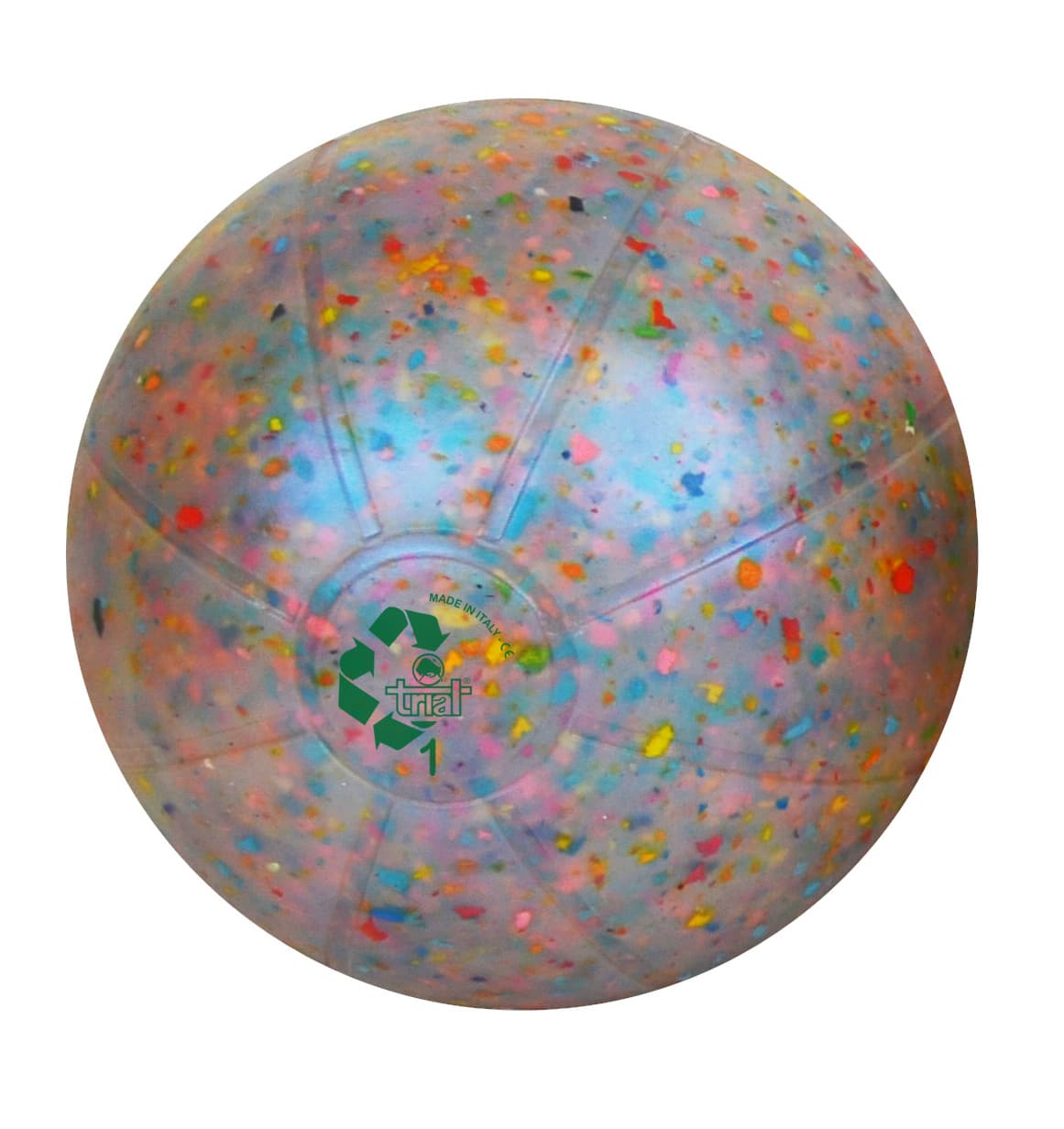 - Iedere bal heeft een eigen kleurvariatie doordat het gerecycled materiaal uit verschillende kleuren bestaat.