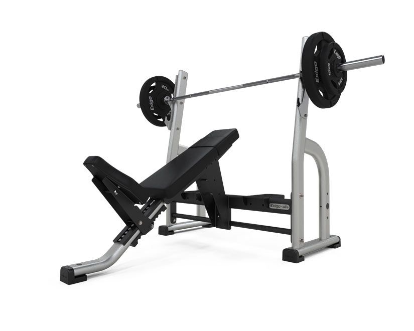 De Exigo Olympic Incline Bench is geschikt bankdruk of schouder oefeningen in een hellingshoek. Deze bank is volledig instelbaar voor de ideale hoogte en heeft een spot plateau voor een spotter. De halterstang kan op twee verschillende hoogtes geplaatst worden.