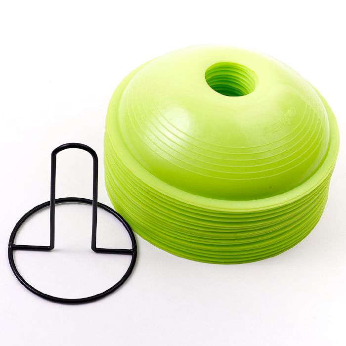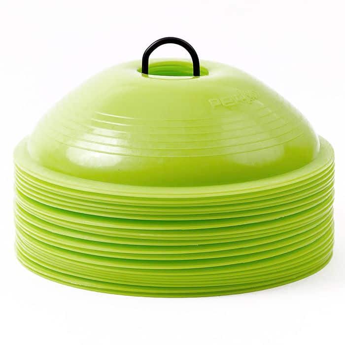 De Quick Cones set bestaat uit 20 cones van 5 cm hoog en met een diameter van 20 cm, opbergrekje en 10 instructiekaarten met een link naar trainingsvideo’s