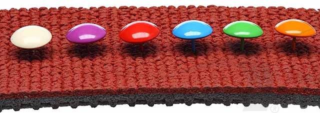 Set van 6 markerings-pinnen voor de aanloop. Gemaakt van staal, powder coated in 6 contrasterende kleuren.