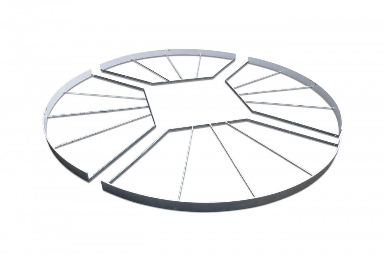 Polanik stalen discus of slingercirkel zonder beton. Het beton kan op locatie door gespecialiseerde mensen aangebracht worden. De stalen ring is gemaakt van gegalvaniseerde stalen elementen.