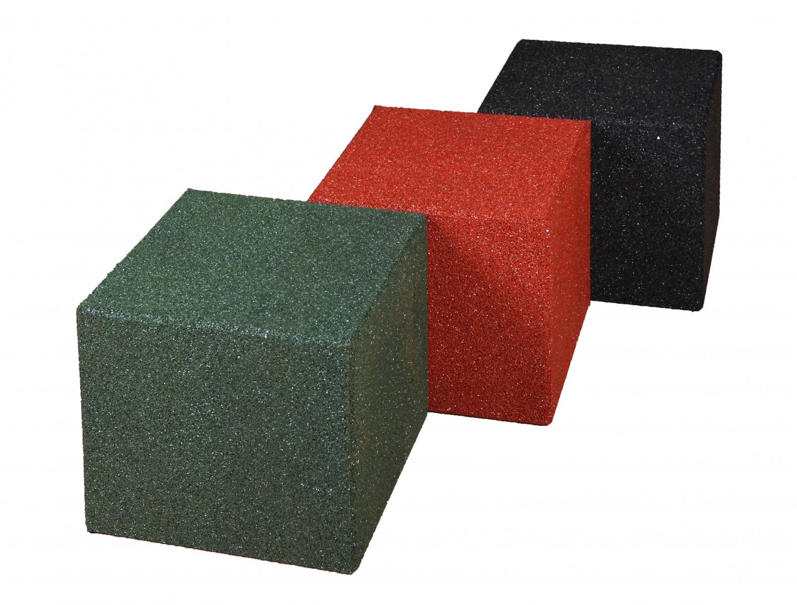 De gerecycled rubber kubussen worden toegepast als sport/ spel – en zitelement op sportpleinen.
